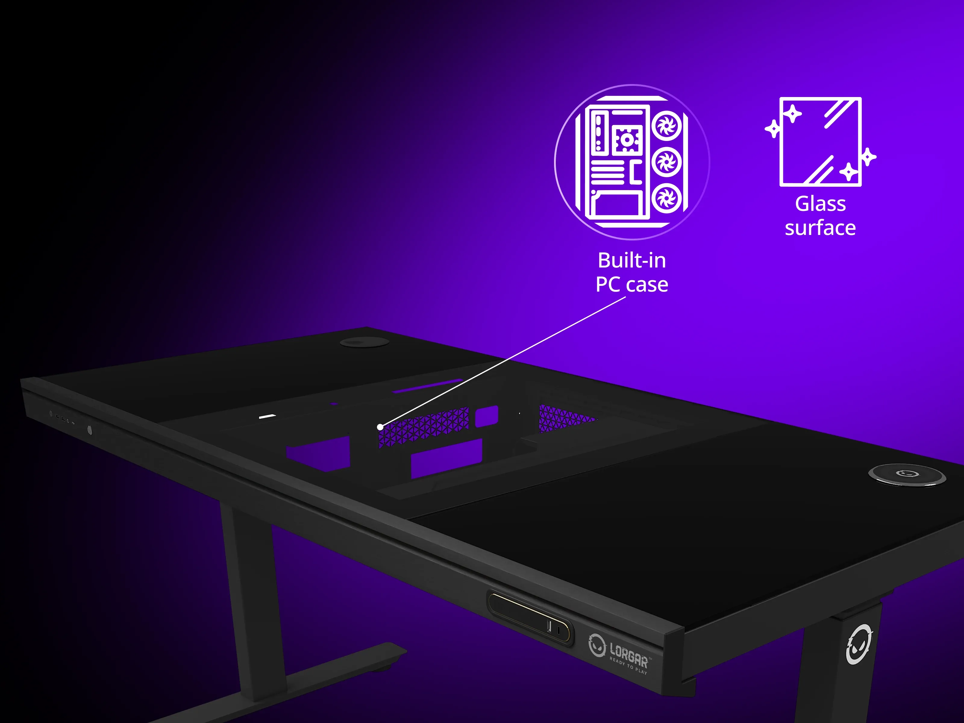 LORGAR expands its gaming ecosystem with the Desk ELITE 90 series, the brand's first desk with integrated PC chassis. Available in wooden (DE90W) and tempered glass (DE90G) surface options.