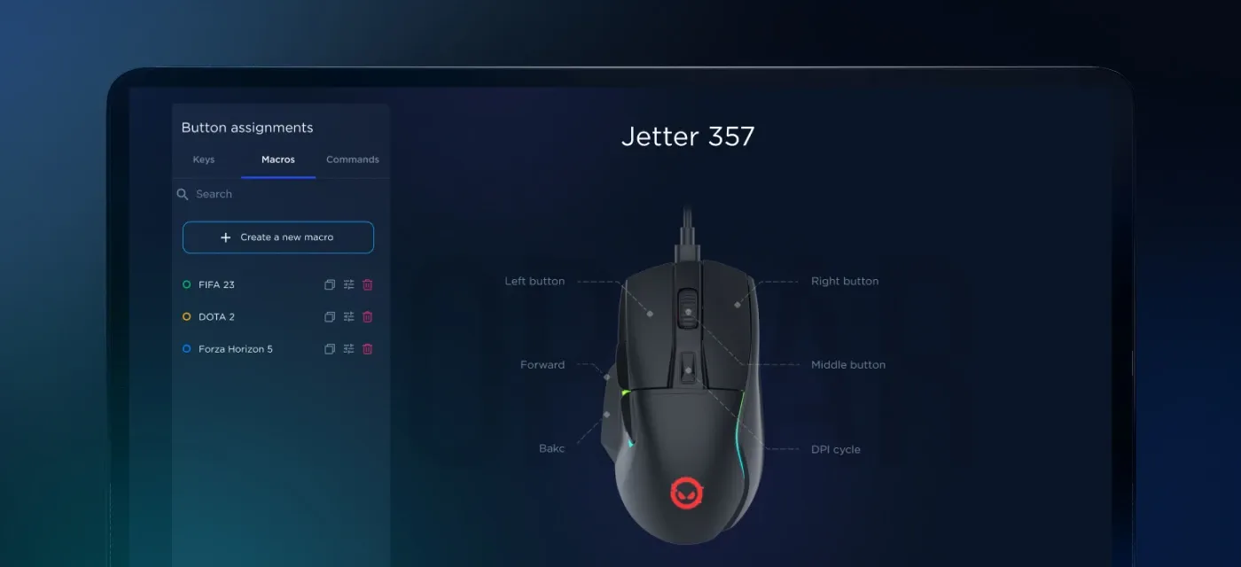 Squeeze the most out of your gaming experience with Jetter 357 – our lightweight and ergonomic gaming mouse.