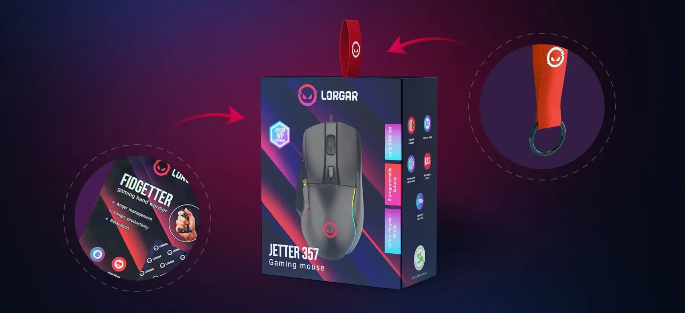 Discover your performance with LORGAR PLATFORM: view mouse speed, distance range, total clicks, and more. On top of that, you’ll find two gifts in the bundle: a branded keychain and two fidgeters.