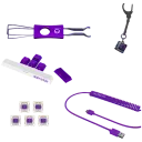 Experience lag-free gaming with dual wireless connectivity options. Choose between high-speed 2.4 GHz with included wireless transmitter or BT 5.0 for multi-device compatibility. Premium-grade 2.3 m purple coiled USB (C) to USB (A) cable is included for charging and wired operation.
