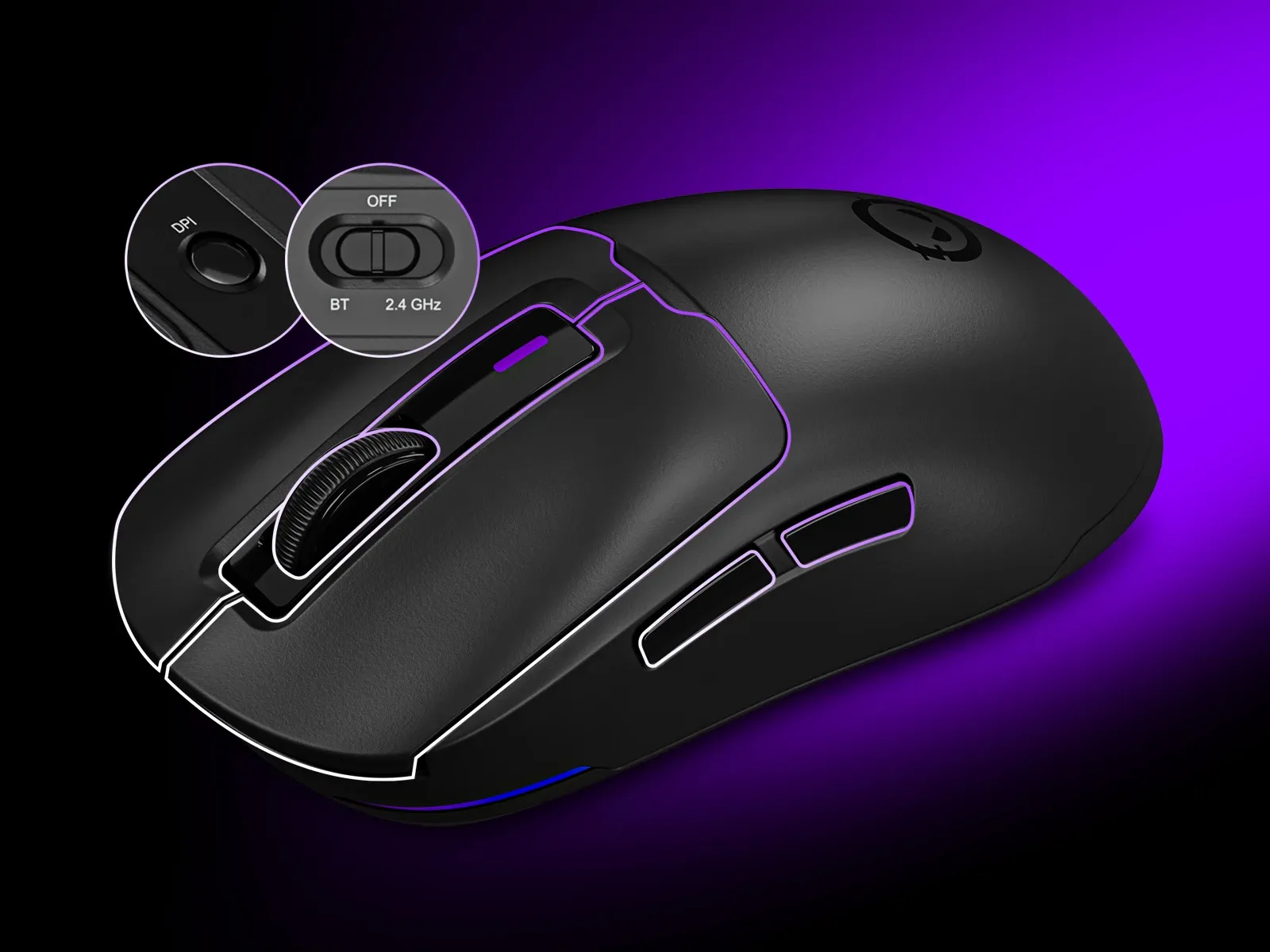 With impressive 12,000 DPI precision this mouse will enhance your accuracy and unlock your full gaming potential. Programmable buttons with an outstanding 50-million-click lifespan for both main buttons let you create custom combinations for winning performances. Triple connectivity options – ultra-responsive 2.4 GHz wireless with 1,000 Hz polling rate, versatile BT 5.3, and USB (C) – ensure seamless gaming in any scenario. The high-capacity battery provides up to 100 hours of gameplay with RGB enabled, extending to 140 hours with lighting disabled, and even longer in BT mode.